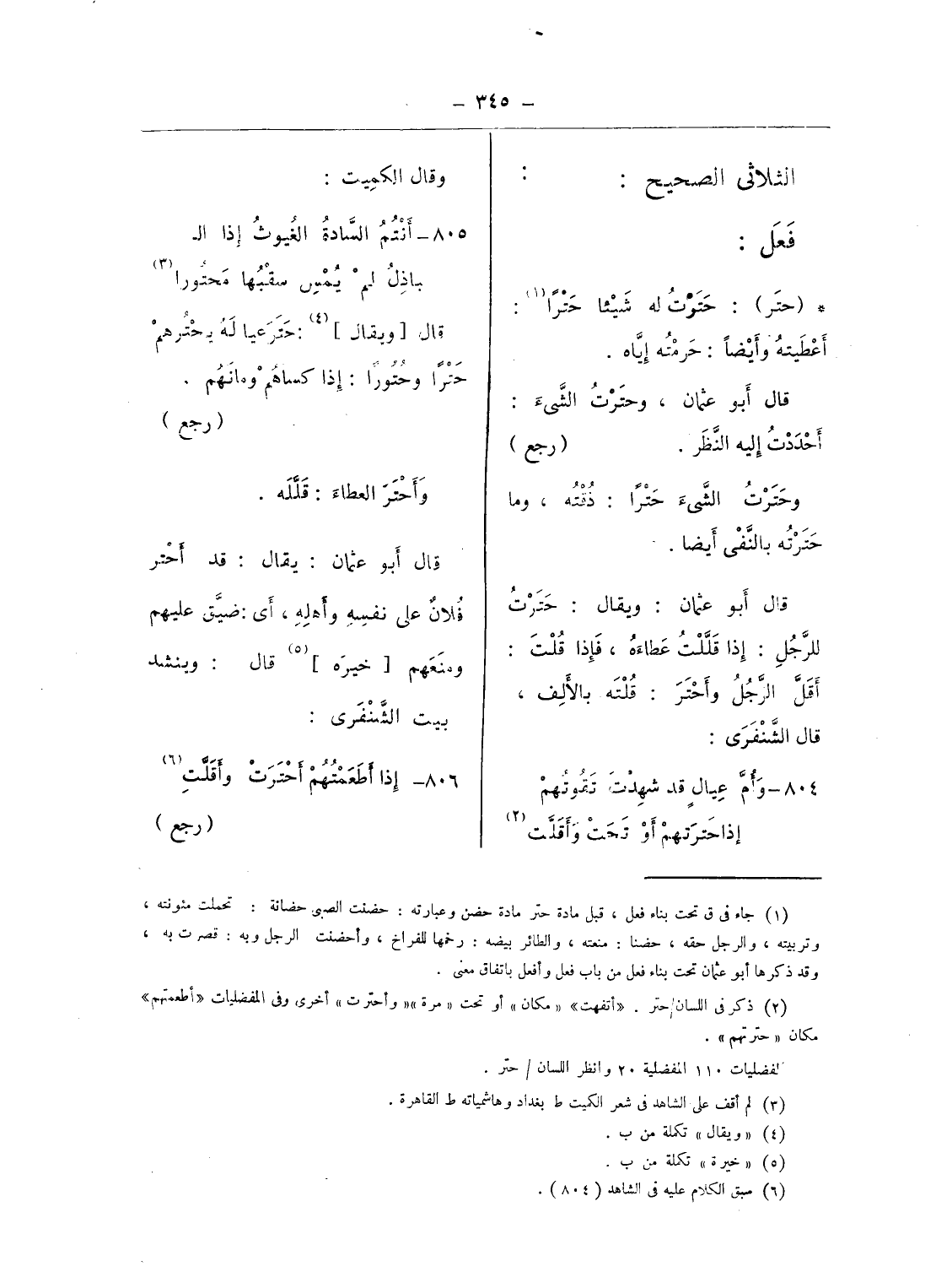 (¬2) ذكر فى اللسان/ حتر. «أتفهت» «مكان» أو تحت «مرة» «وأحترت» أخرى وفى المفضليات «أطعمتهم» مكان «حترتهم».