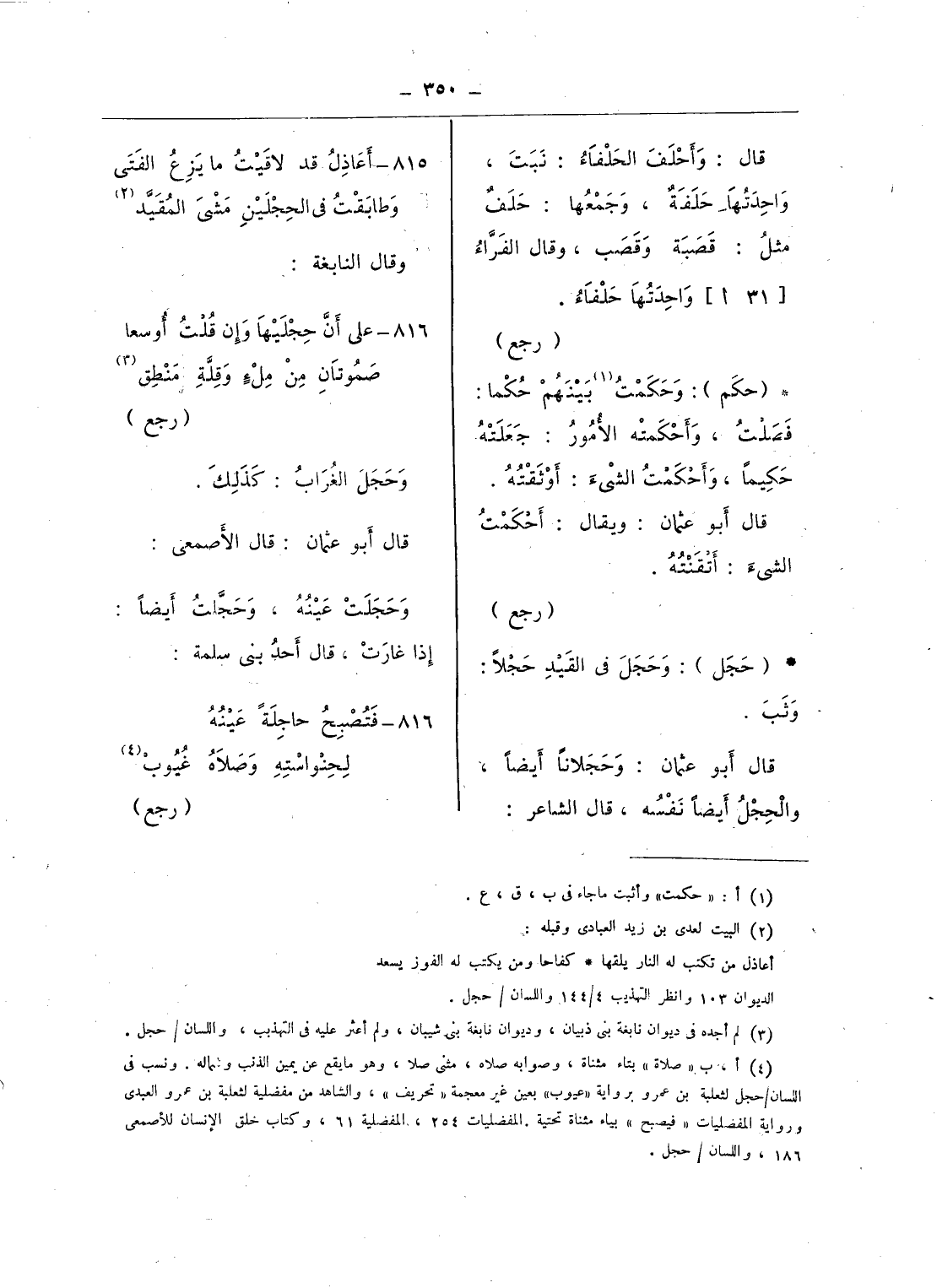 (¬3) لم أجده فى ديوان نابغة بنى ذبيان، وديوان نابغة بنى شيبان، ولم أعثر عليه فى التهذيب، واللسان/ حجل.