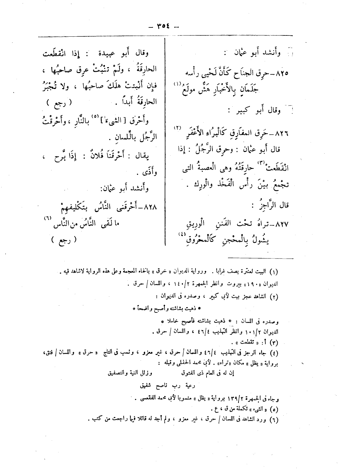(¬6) ورد الشاهد فى اللسان/ حرق، غير معزو، ولم أجد له قائلا فيما راجعت من كتب.