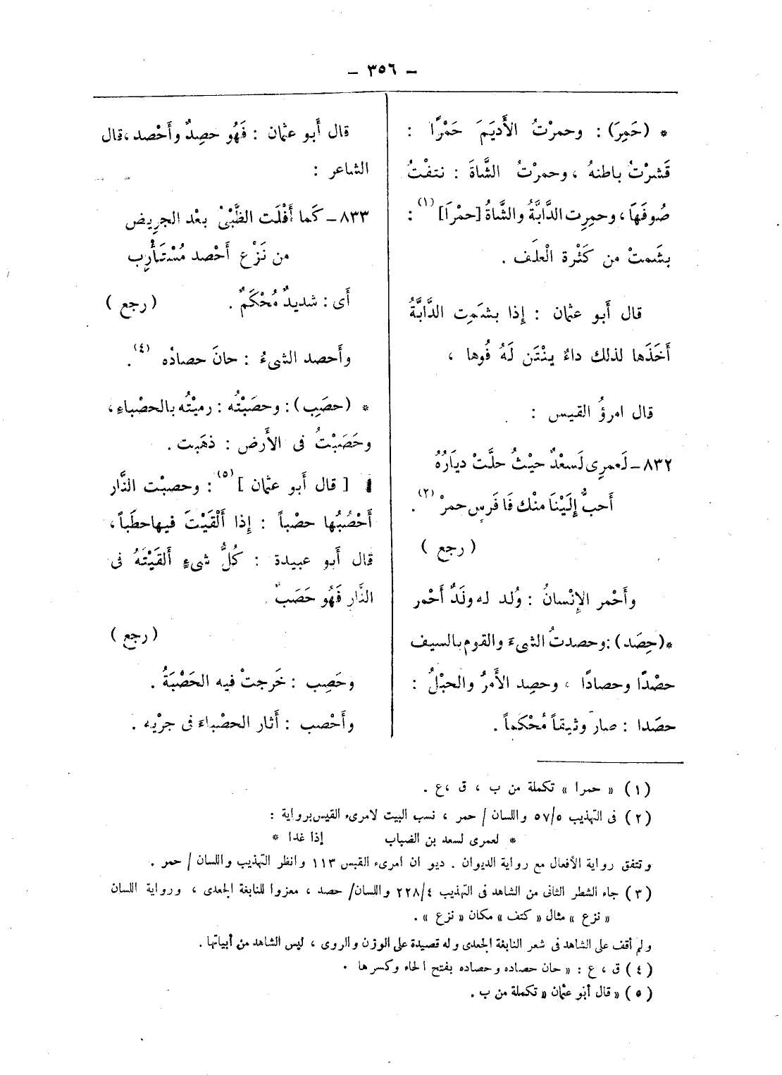(¬2) فى التهذيب 5/ 57 واللسان/ حمر، نسب البيت لامرئ القيس برواية: