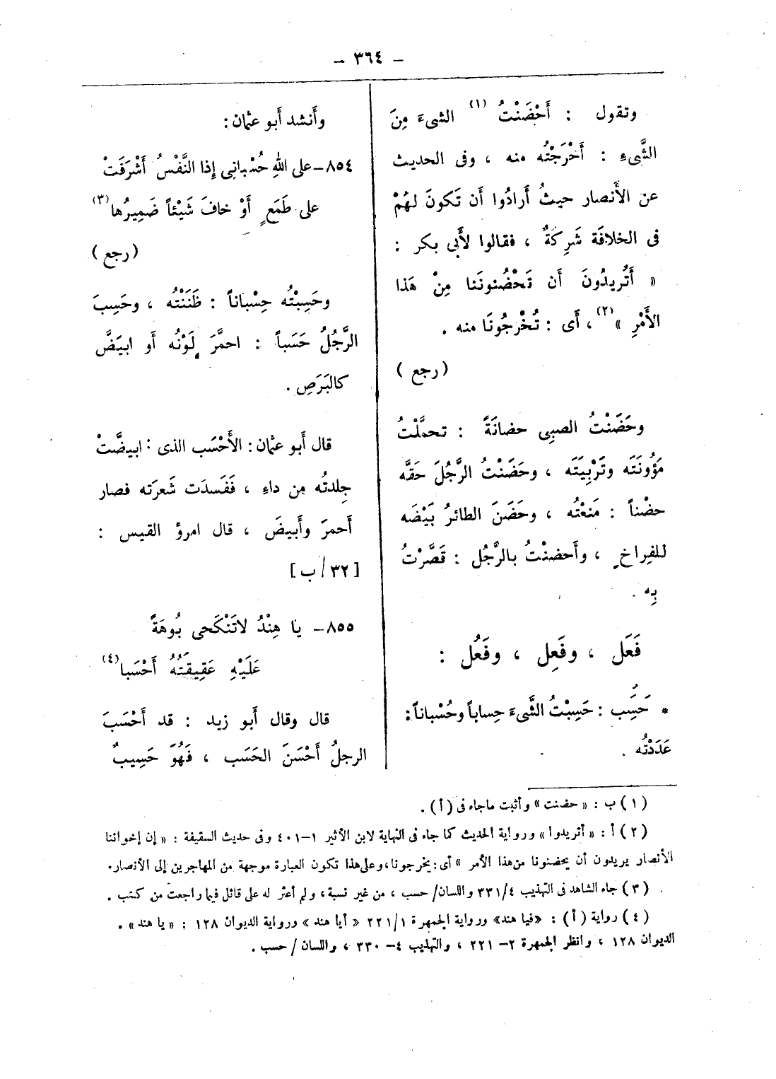 (¬3) جاء الشاهد فى التهذيب 4/ 331 واللسان/ حسب، من غير نسبة، ولم أعثر له على قائل فيما راجعت من كتب.