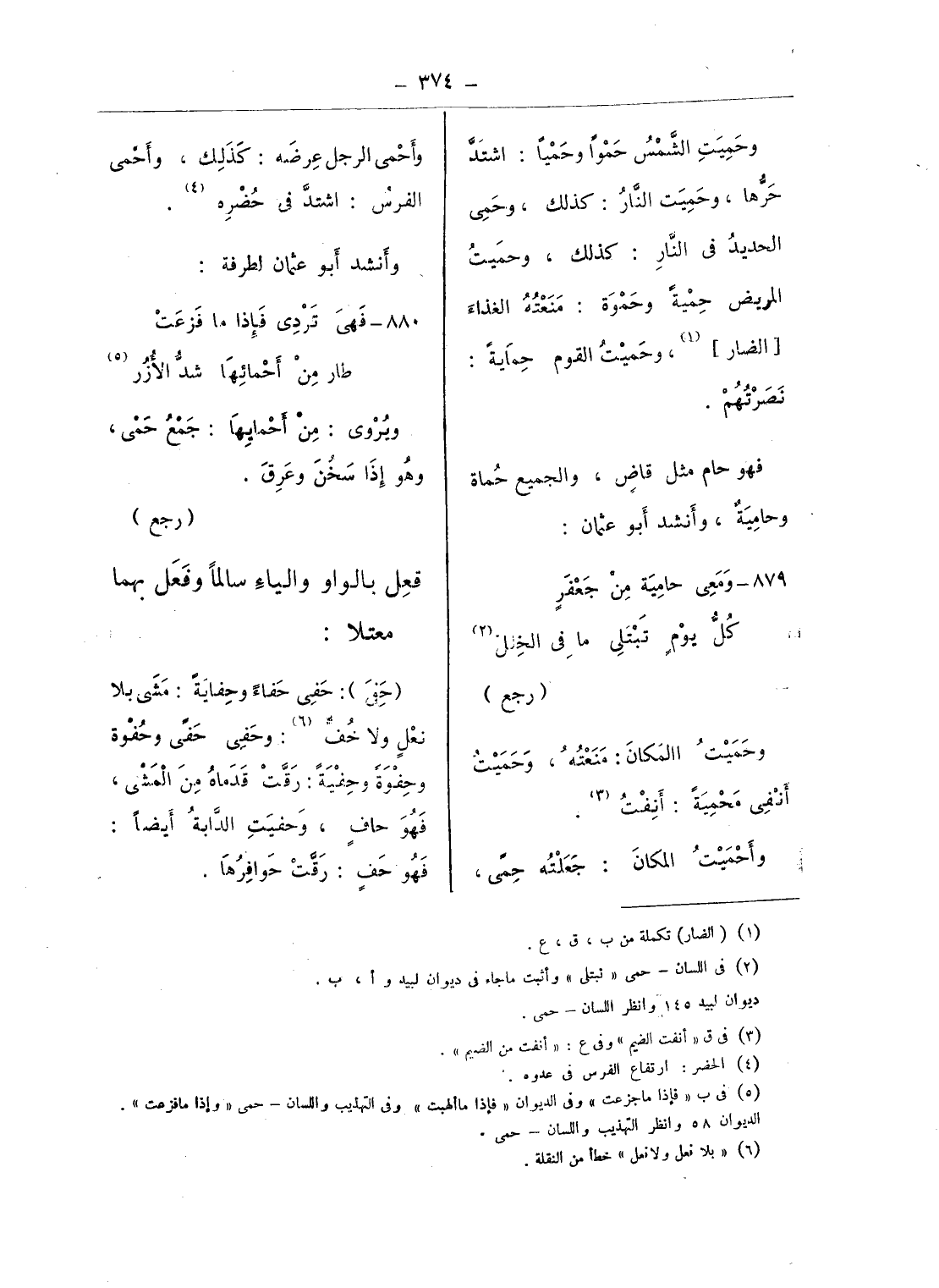 ديوان لبيد 145 وانظر اللسان - حمى.