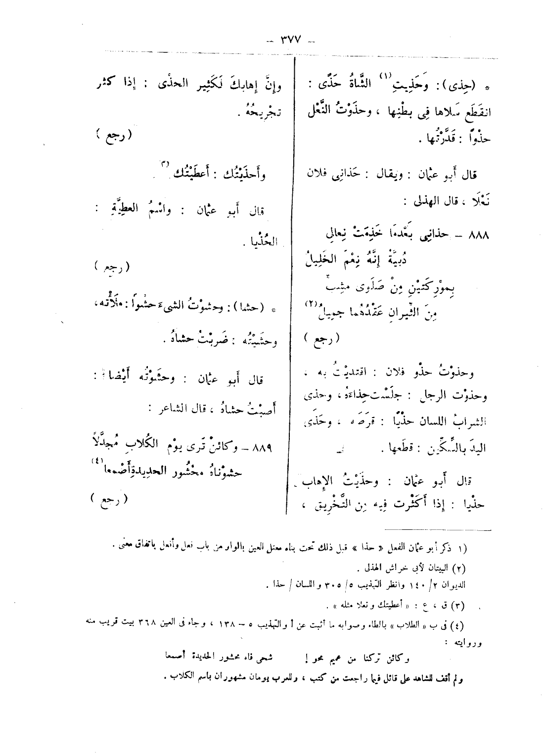 (¬1) ذكر أبو عثمان الفعل «حذا» قبل ذلك تحت بناء معتل العين بالواو من باب فعل وأفعل باتفاق معنى.