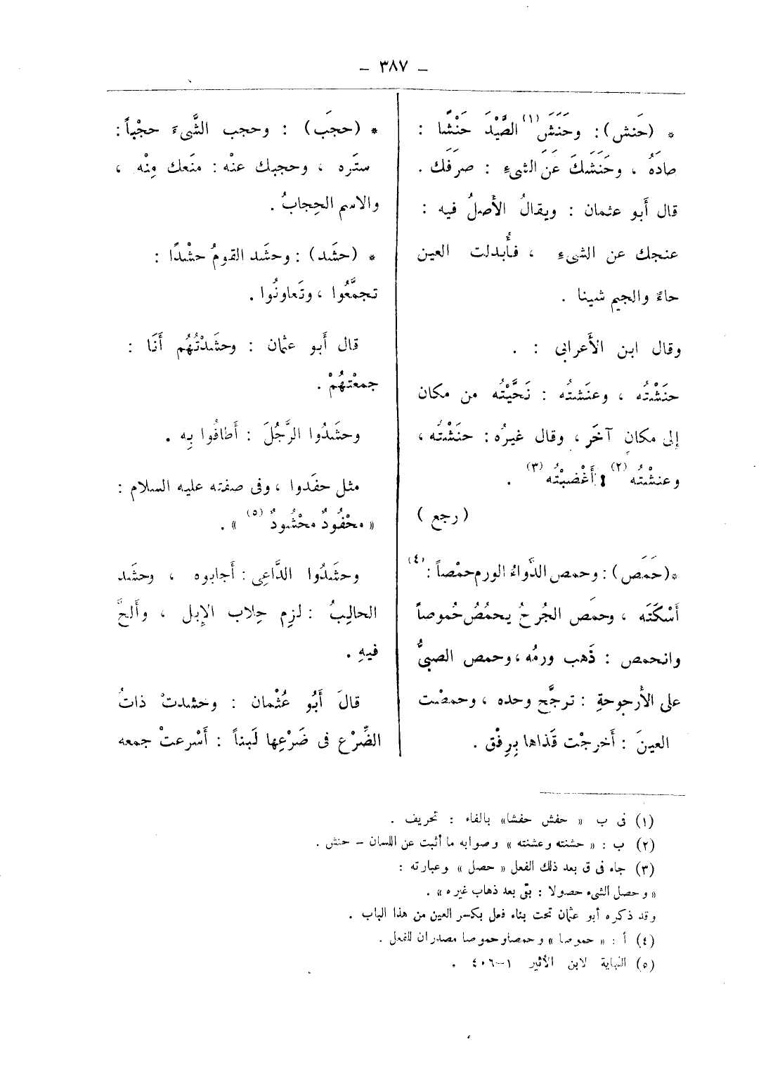 (¬4) أ: «حموصا» وحمصا وحموصا مصدران للفعل.