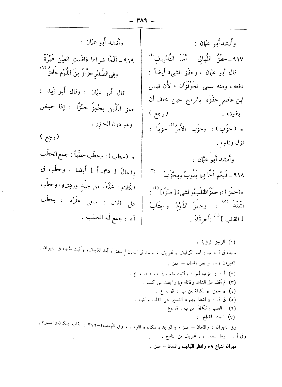 919 - فلمّا شراها فاضت العين عبرة … وفى الصّدر حزّاز من اللّوم حامز (¬7)