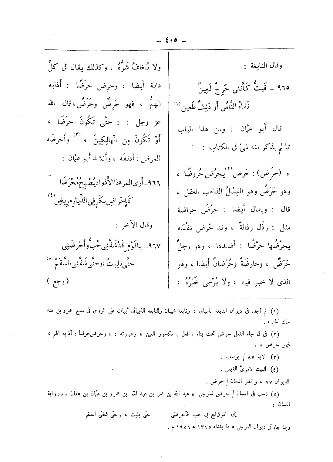 965 - فبتّ كأننى حرج لعين … نفاه النّاس أو دنف طعن (¬1)