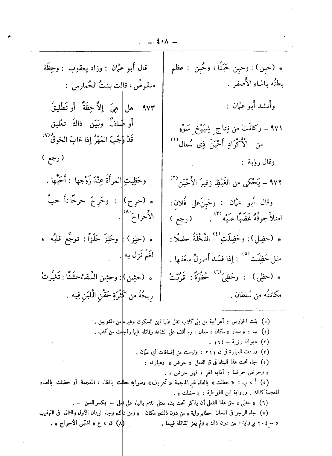 (*) بنت الحمارس: أعرابية من بنى كلاب نقل عنها ابن السكيت وغيره من اللغويين.