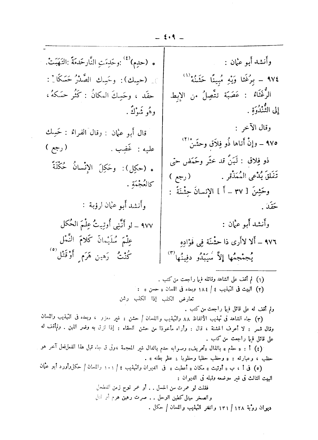 (¬4) أ: «حذم» بالذال «تحريف» وصوابه حدم بالدال غير المعجمة، وفى ق جاء قبل هذا الفعل فعل آخر هو حظب، وعبارته: «وحظب حظبا وحظوبا: عظم بطنه».