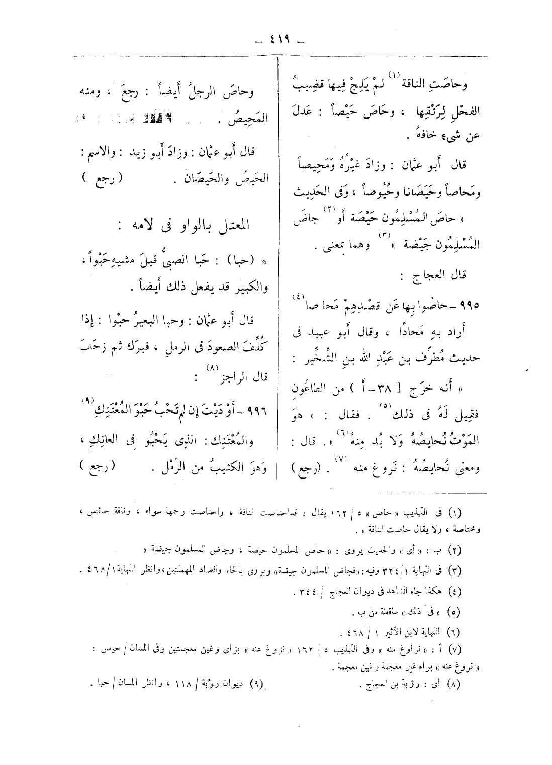 (¬9) ديوان رؤبة/ 118، وانظر اللسان/ حبا.