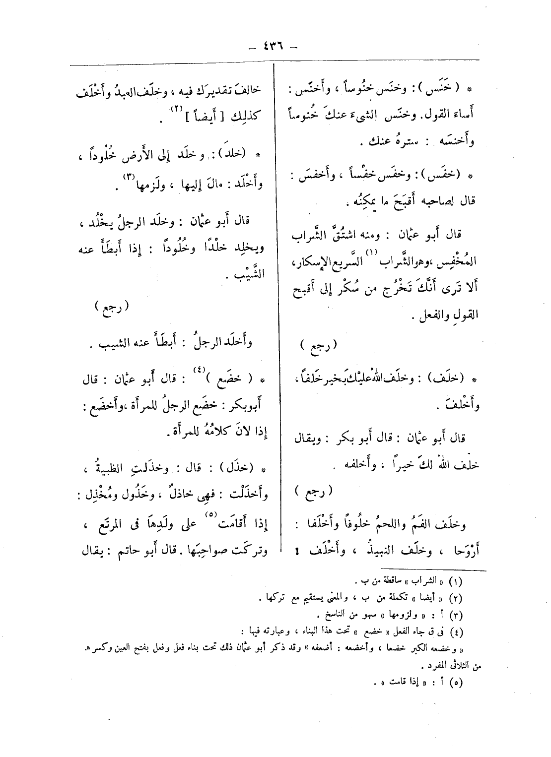 (¬4) فى ق جاء الفعل «خضع» تحت هذا البناء؛ وعبارته فيها: