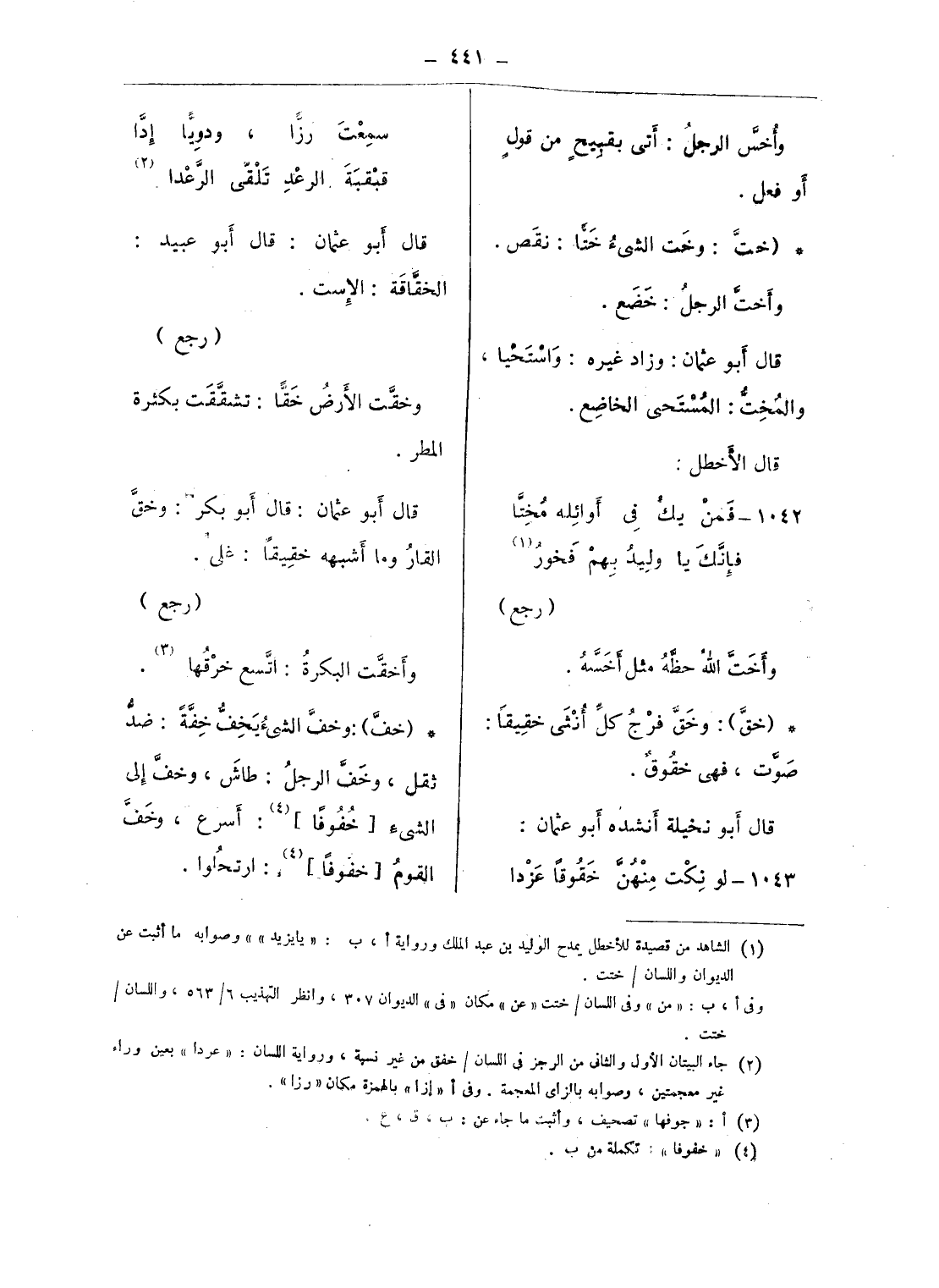 (¬1) الشاهد من قصيدة للأخطل يمدح الوليد بن عبد الملك ورواية أ، ب: «يا يزيد»» وصوابه ما أثبت عن الديوان واللسان/ ختت.