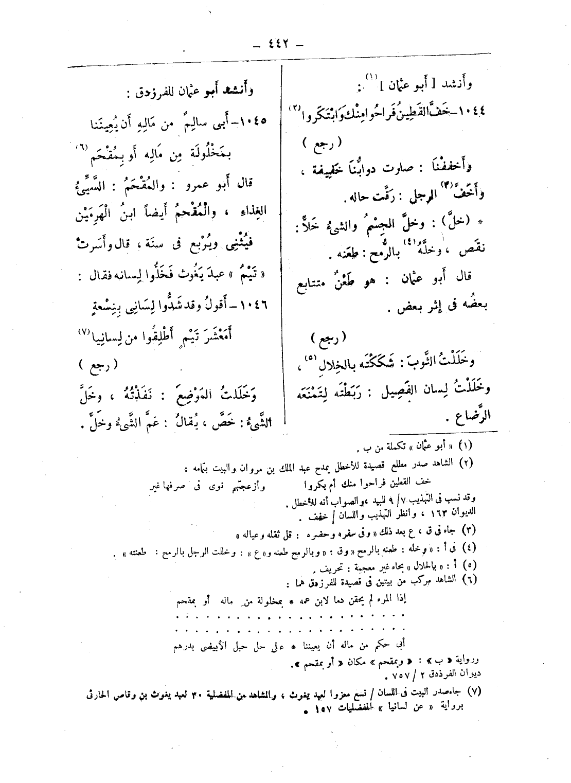 (¬6) الشاهد مركب من بيتين فى قصيدة للفرزدق هما: