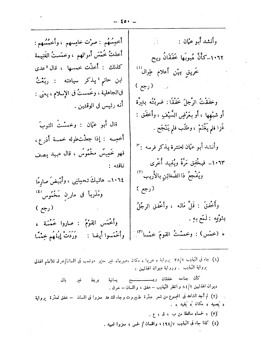 (¬4) كذا جاء فى التهذيب 7/ 194، واللسان/ خمس، معزوا لعبيد.