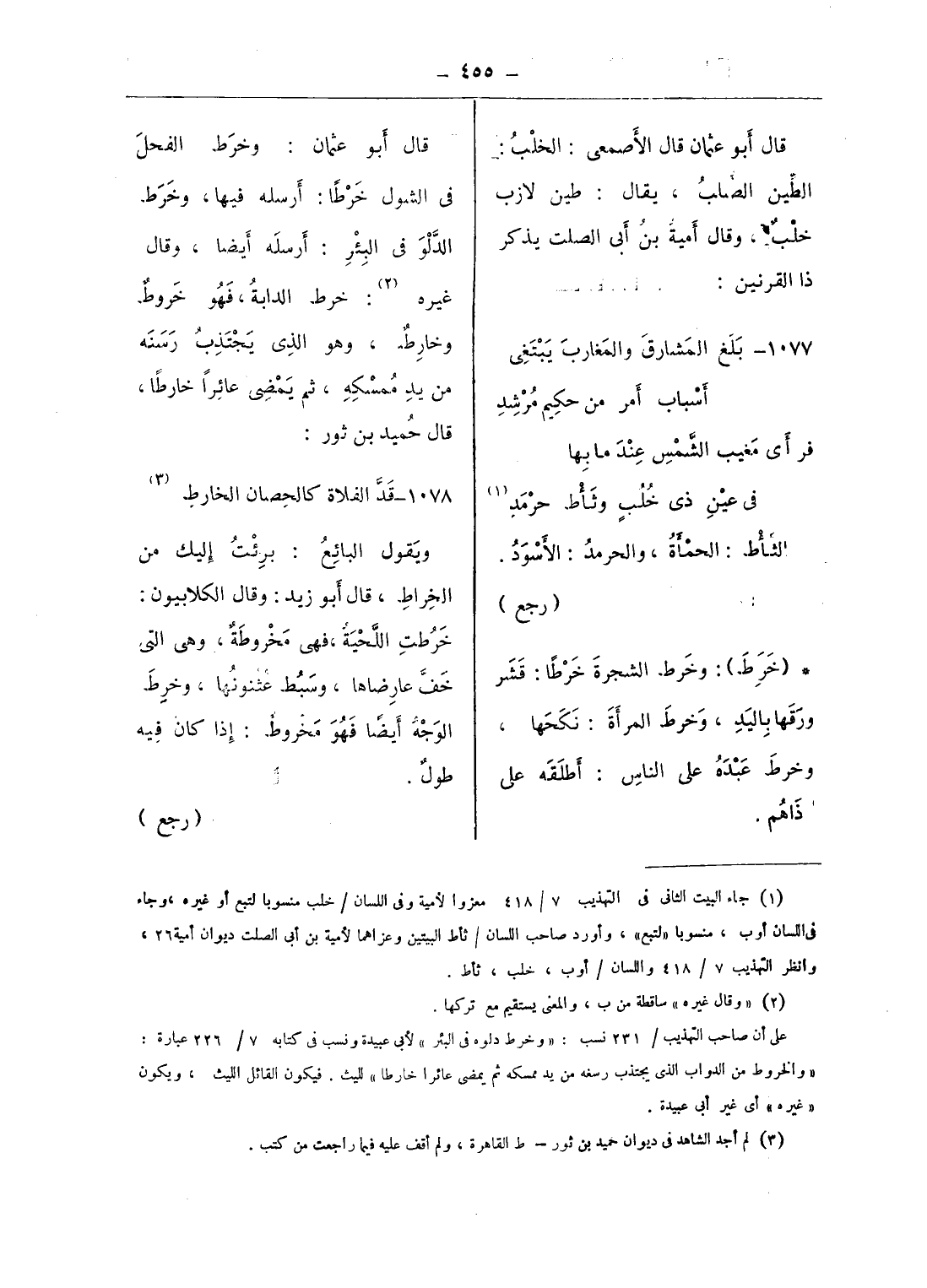 (¬3) لم أجد الشاهد فى ديوان حميد بن ثور - ط القاهرة، ولم أقف عليه فيما راجعت من كتب.