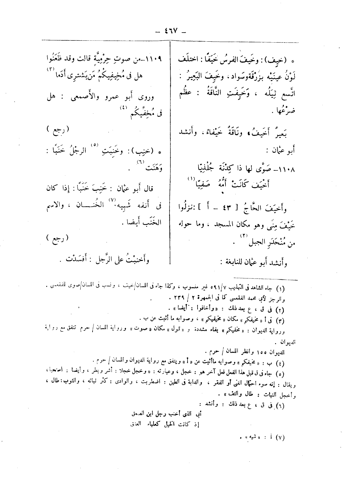 (¬1) جاء الشاهد فى التهذيب 7/ 591 غير منسوب، وكذا جاء فى اللسان/ خيف، ونسب فى اللسان/ صوى للفقعسى.