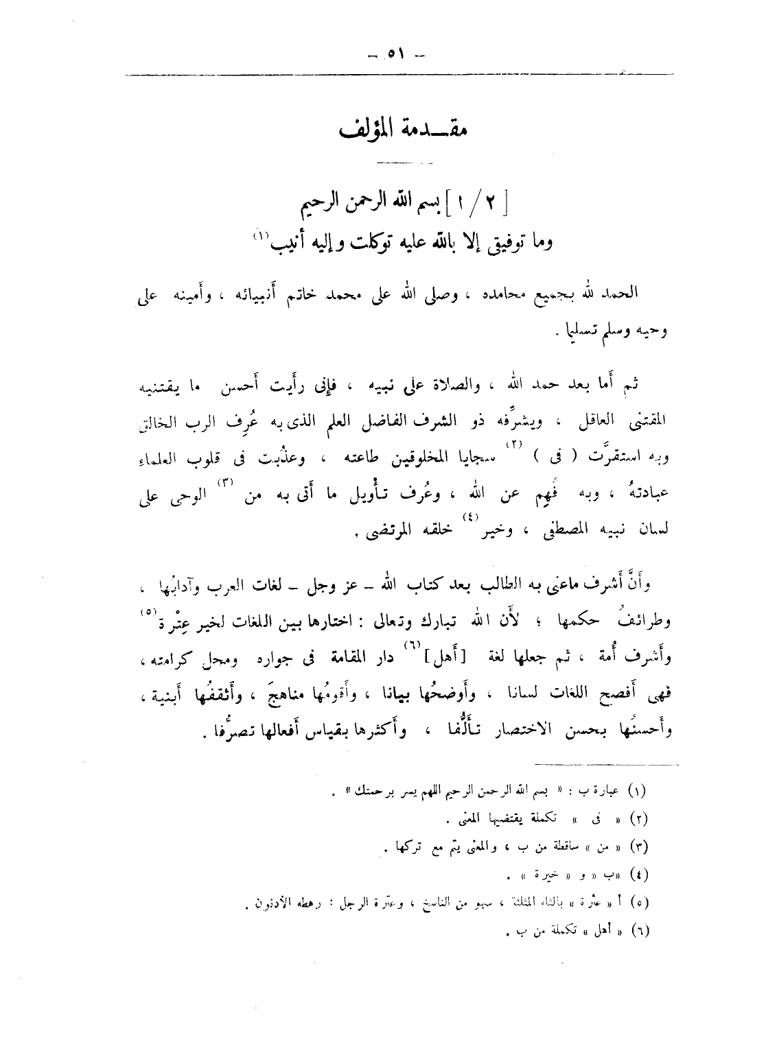 [2/ 1] بسم الله الرحمن الرحيم وما توفيقى إلا بالله عليه توكلت وإليه أنيب (¬1) الحمد لله بجميع محامده، وصلّى الله على محمد خاتم أنبيائه، وأمينه على وحيه وسلم تسليما.