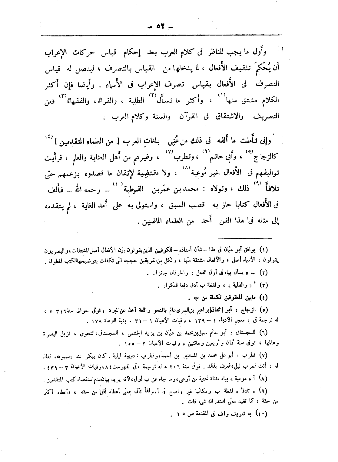وإنى تأملت ما ألفه فى ذلك من عنى بلغات العرب [من العلماء المتقدمين] (¬4) كالزجاج (¬5)، وأبى حاتم (¬6)، وقطرب (¬7)، وغيرهم من أهل العناية والعلم، فرأيت تواليفهم فى الأفعال غير موعبة (¬8)، ولا مقتضية لإتقان ما قصدوه بزعمهم حتى تلافأ (¬9) ذلك، وتولاه: محمد بن عمر بن القوطية (¬10) - رحمه الله - فألف فى الأفعال كتابا حاز به قصب السبق، واستولى به على أمد الغاية، لم يتقدمه إلى مثله فى هذا الفن أحد من العلماء الماضين.