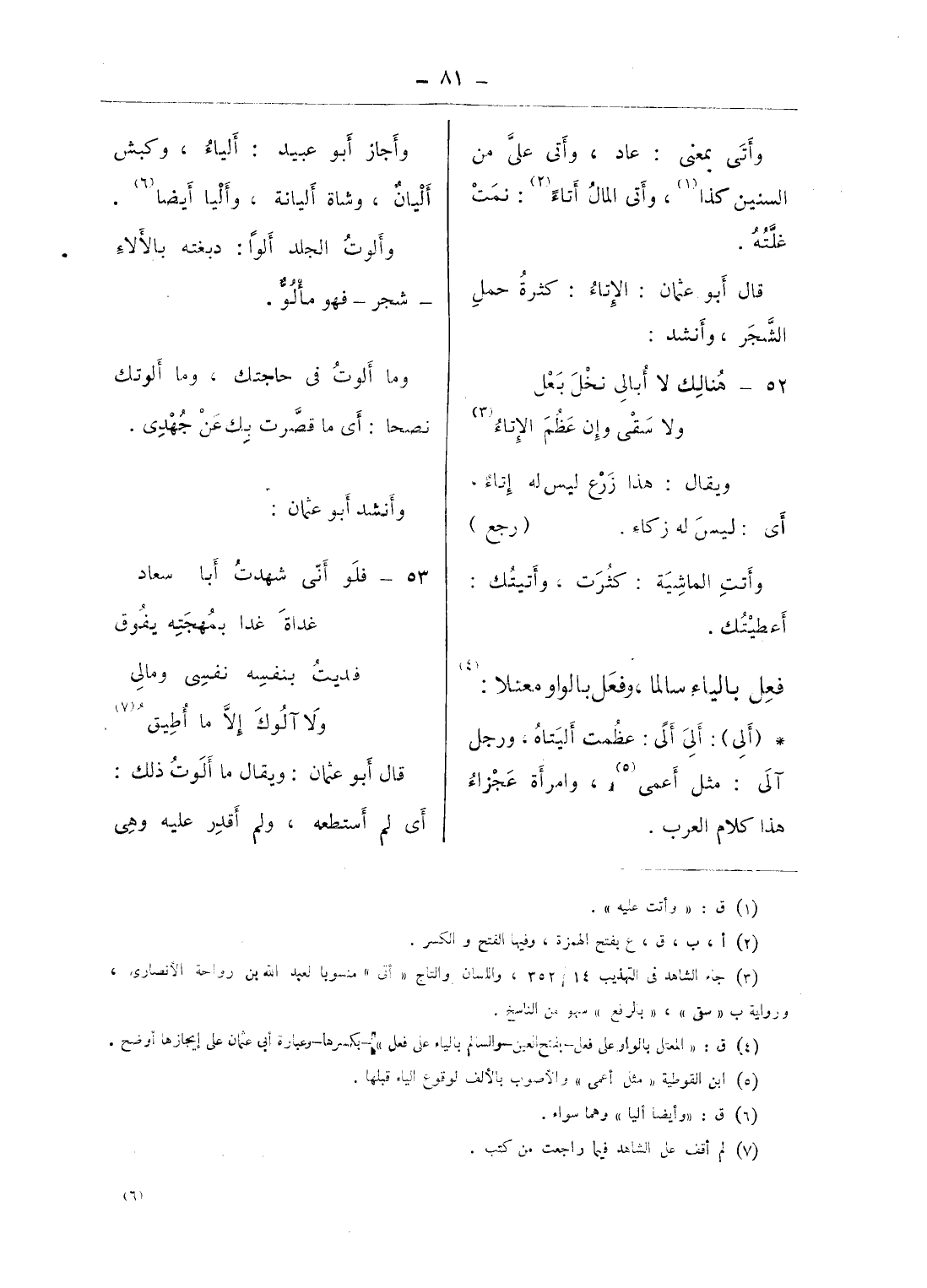 وأتى بمعنى: عاد، وأتى علىّ من السنين كذا (¬1)، وأتى المال أتاء (¬2): نمت غلّته.