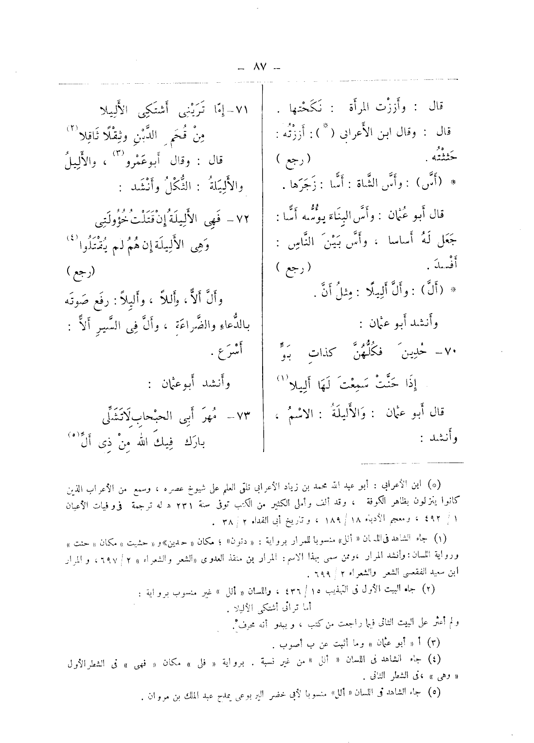 71 - إمّا ترينى أشتكى الأليلا … من قحم الدّين وثقلا ثاقلا (¬2)