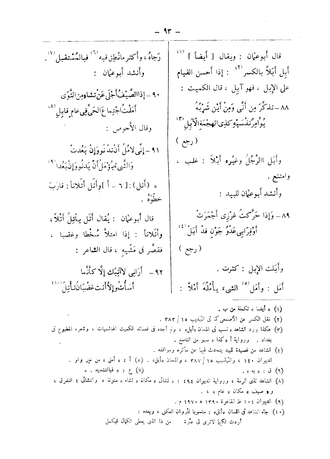 (¬3) هكذا ورد الشاهد ونسب فى اللسان «أبل»، ولم أجده فى قصائد الكميت الهاشميات، وشعره المطبوع فى بغداد. ورواية أ «كذا» سهو من الناسخ.