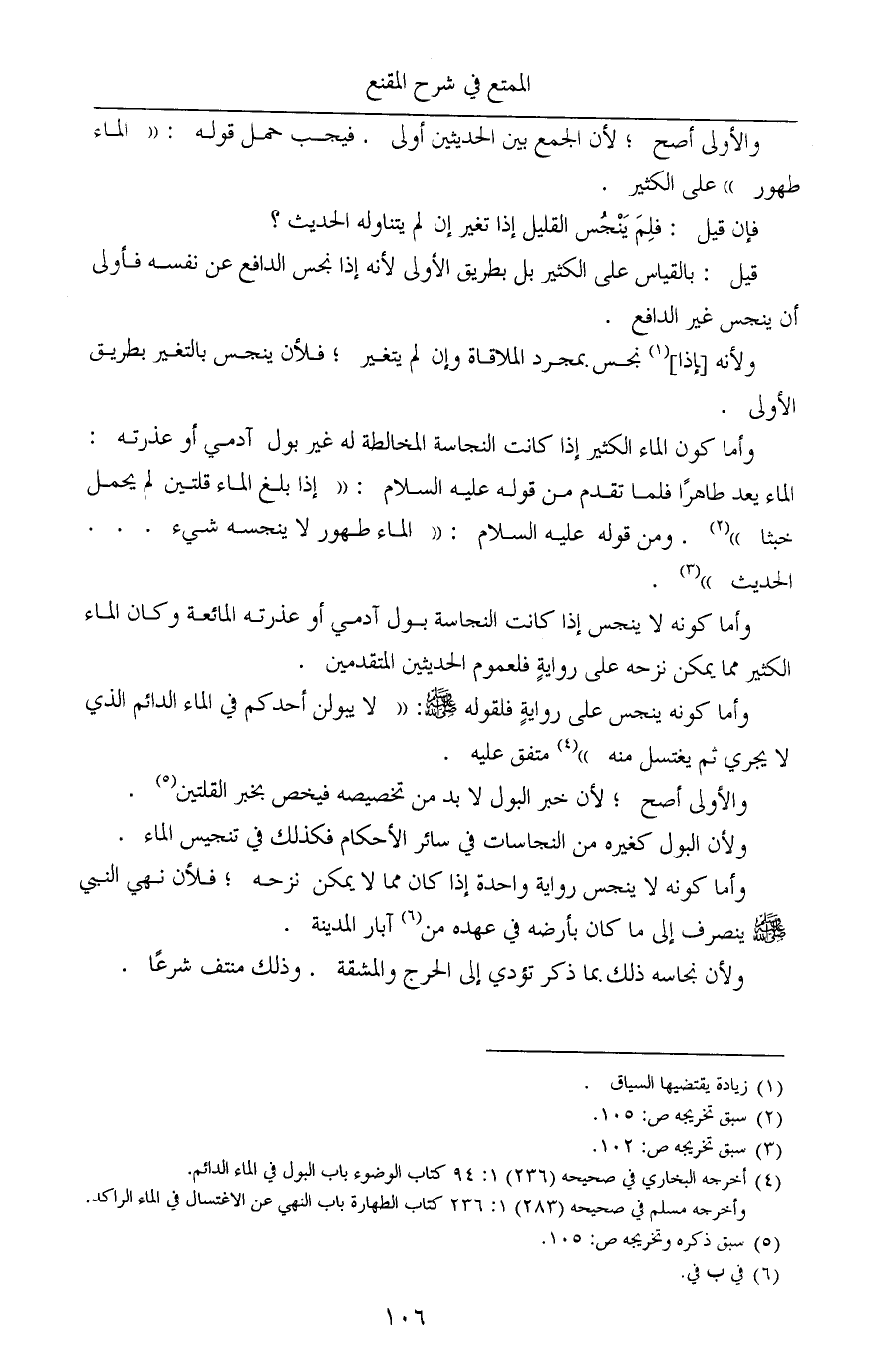 (¬4) أخرجه البخاري في صحيحه (236) 1: 94 كتاب الوضوء باب البول في الماء الدائم.