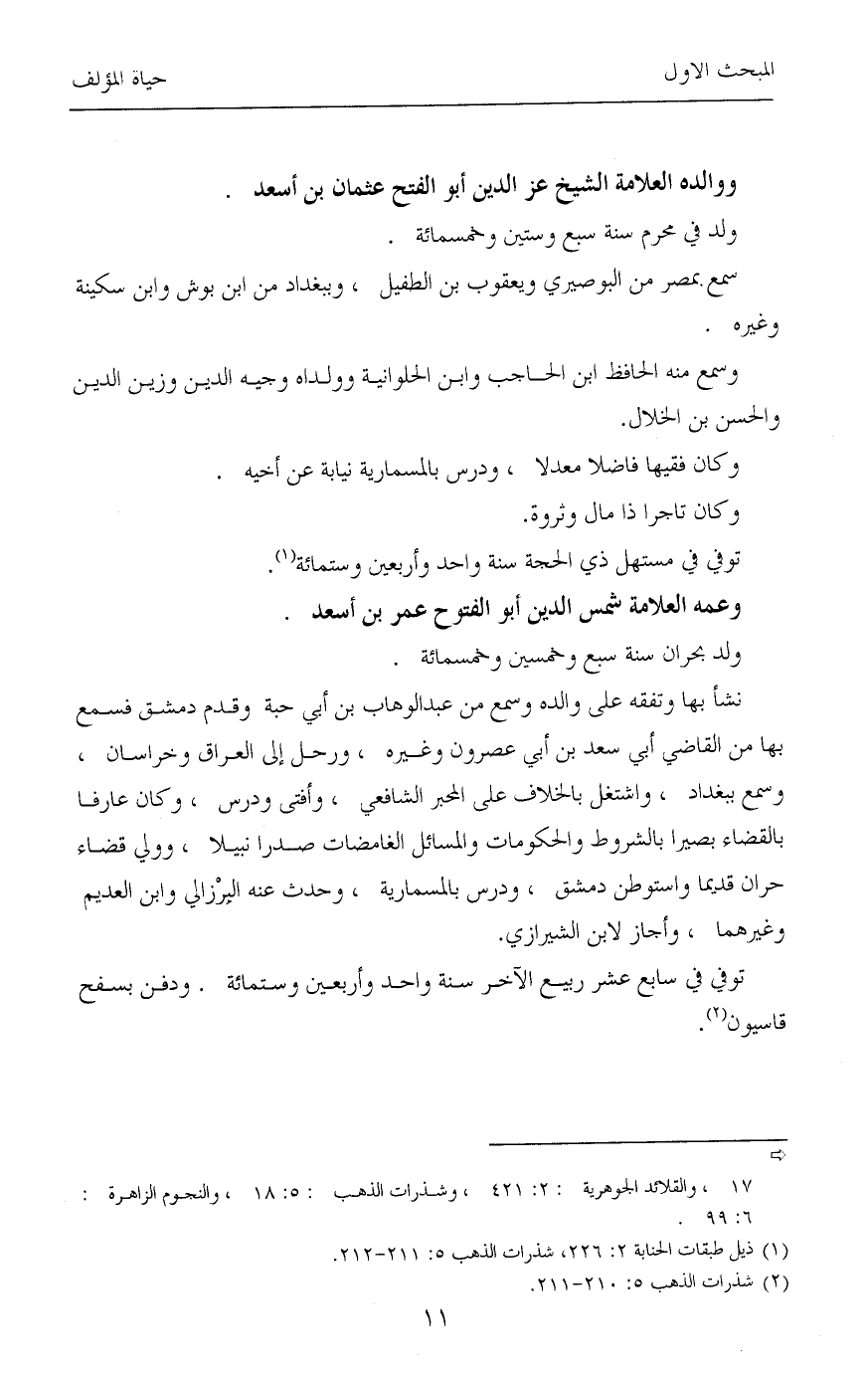 ووالده العلامة الشيخ عز الدين أبو الفتح عثمان بن أسعد.
