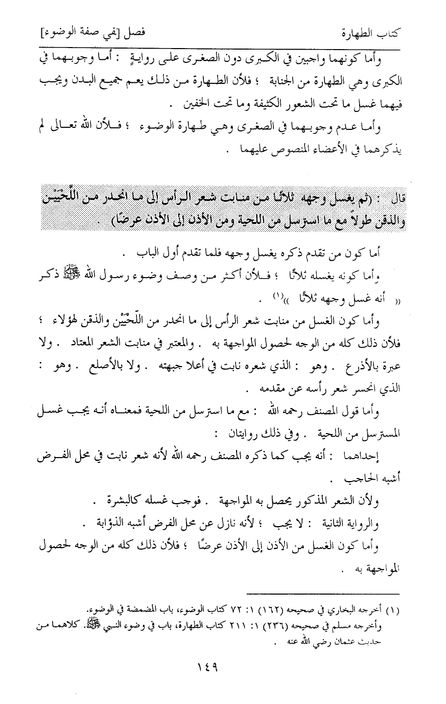 وأما كونهما واجبين في الكبرى دون الصغرى على روايةٍ: أما وجوبهما في الكبرى وهي الطهارة من الجنابة؛ فلأن الطهارة من ذلك يعم جميع البدن ويجب فيهما غسل ما تحت الشعور الكثيفة وما تحت الخفين.