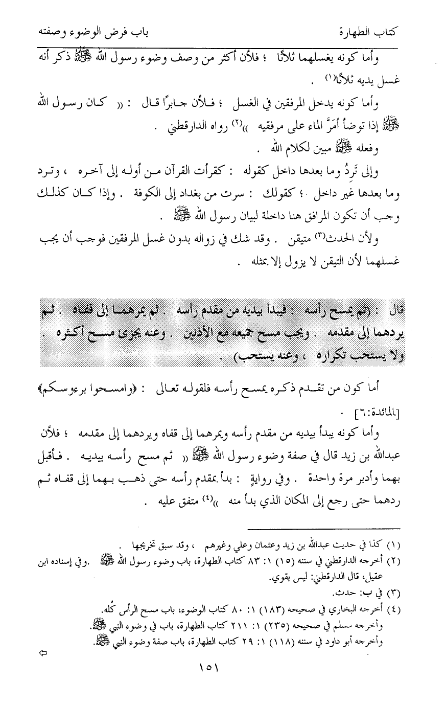 (¬4) أخرجه البخاري في صحيحه (183) 1: 80 كتاب الوضوء، باب مسح الرأس كُله.