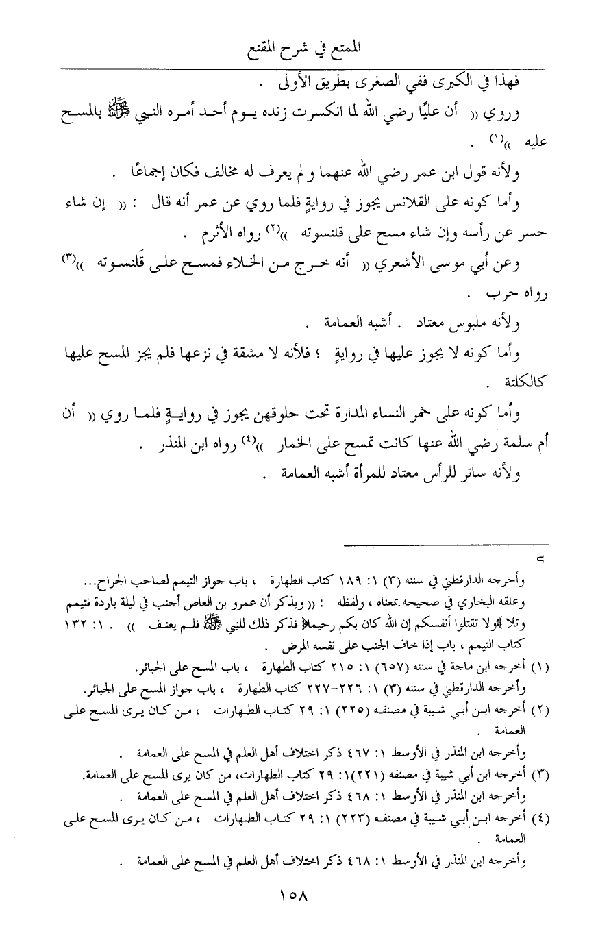 (¬4) أخرجه ابن أبي شيبة في مصنفه (223) 1: 29 كتاب الطهارات، من كان يرى المسح على العمامة.