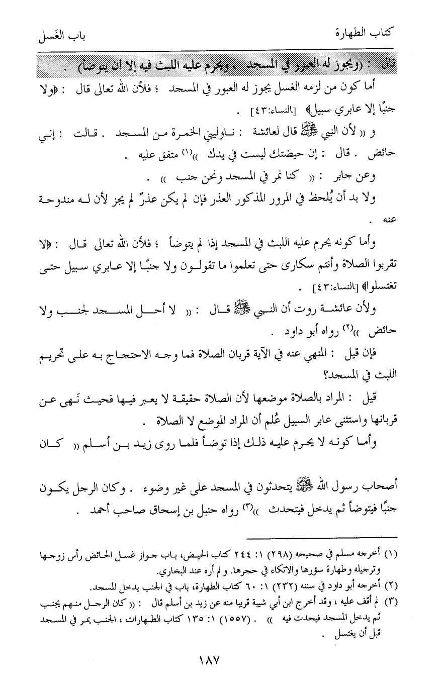 (¬2) أخرجه أبو داود في سننه (232) 1: 60 كتاب الطهارة، باب في الجنب يدخل المسجد.