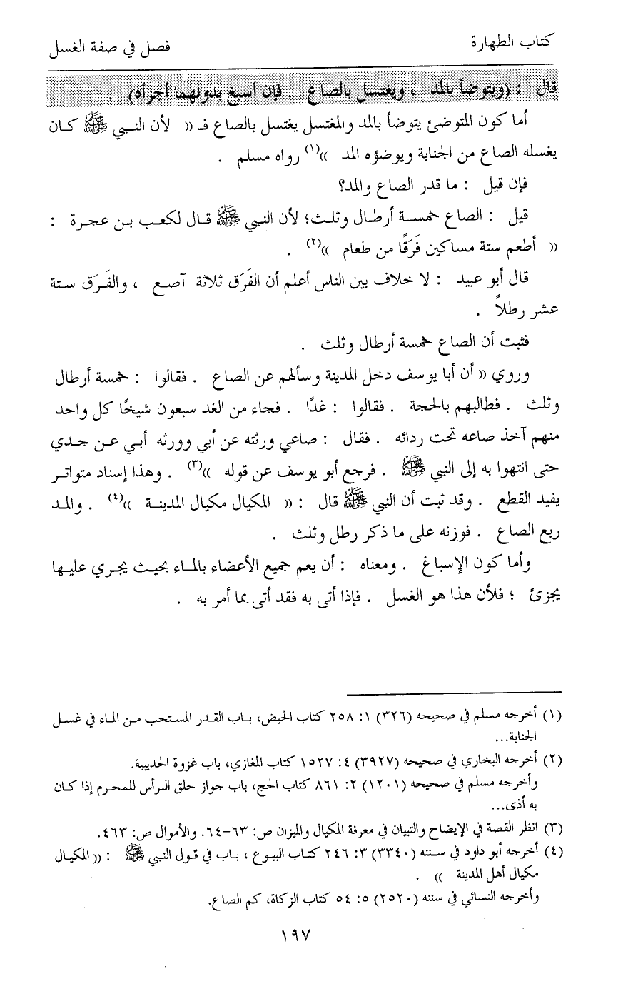 (¬1) أخرجه مسلم في صحيحه (326) 1: 258 كتاب الحيض، باب القدر المستحب من الماء في غسل الجنابة ...