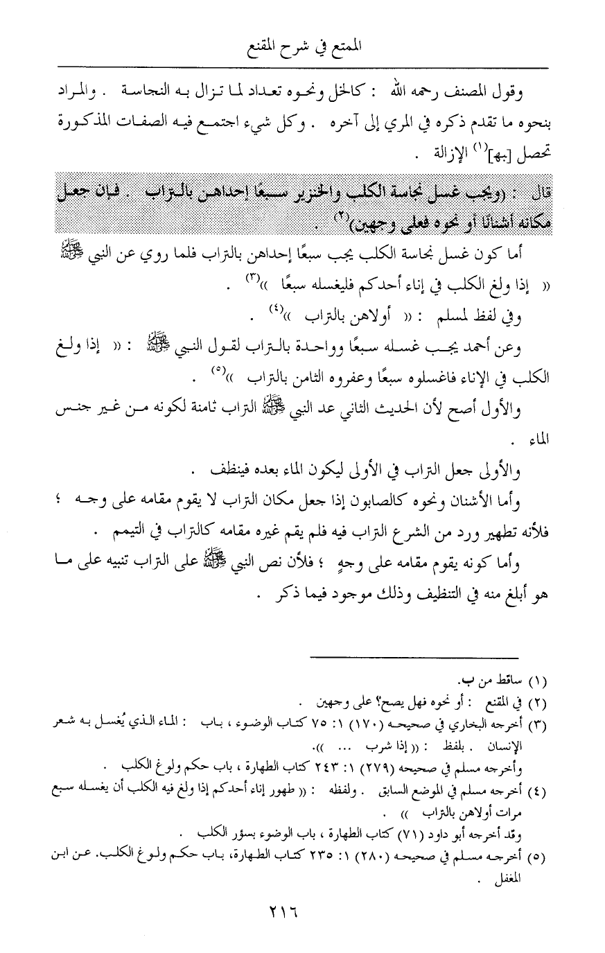 (¬5) أخرجه مسلم في صحيحه (280) 1: 235 كتاب الطهارة، باب حكم ولوغ الكلب. عن ابن المغفل.