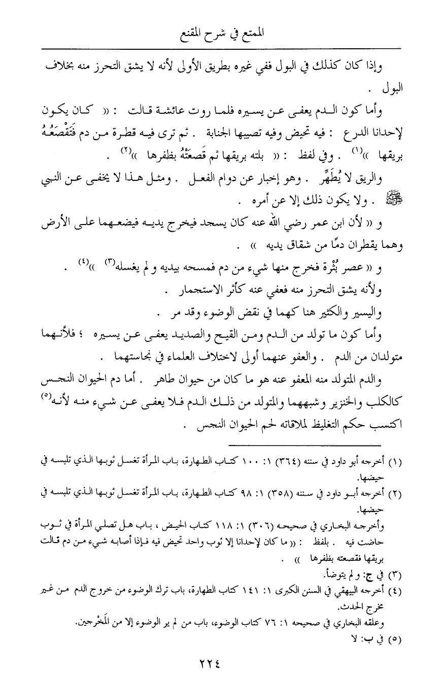 (¬5) أخرجه البيهقي في السنن الكبرى 1: 141 كتاب الطهارة، باب ترك الوضوء من خروج الدم من غير مخرج الحدث.