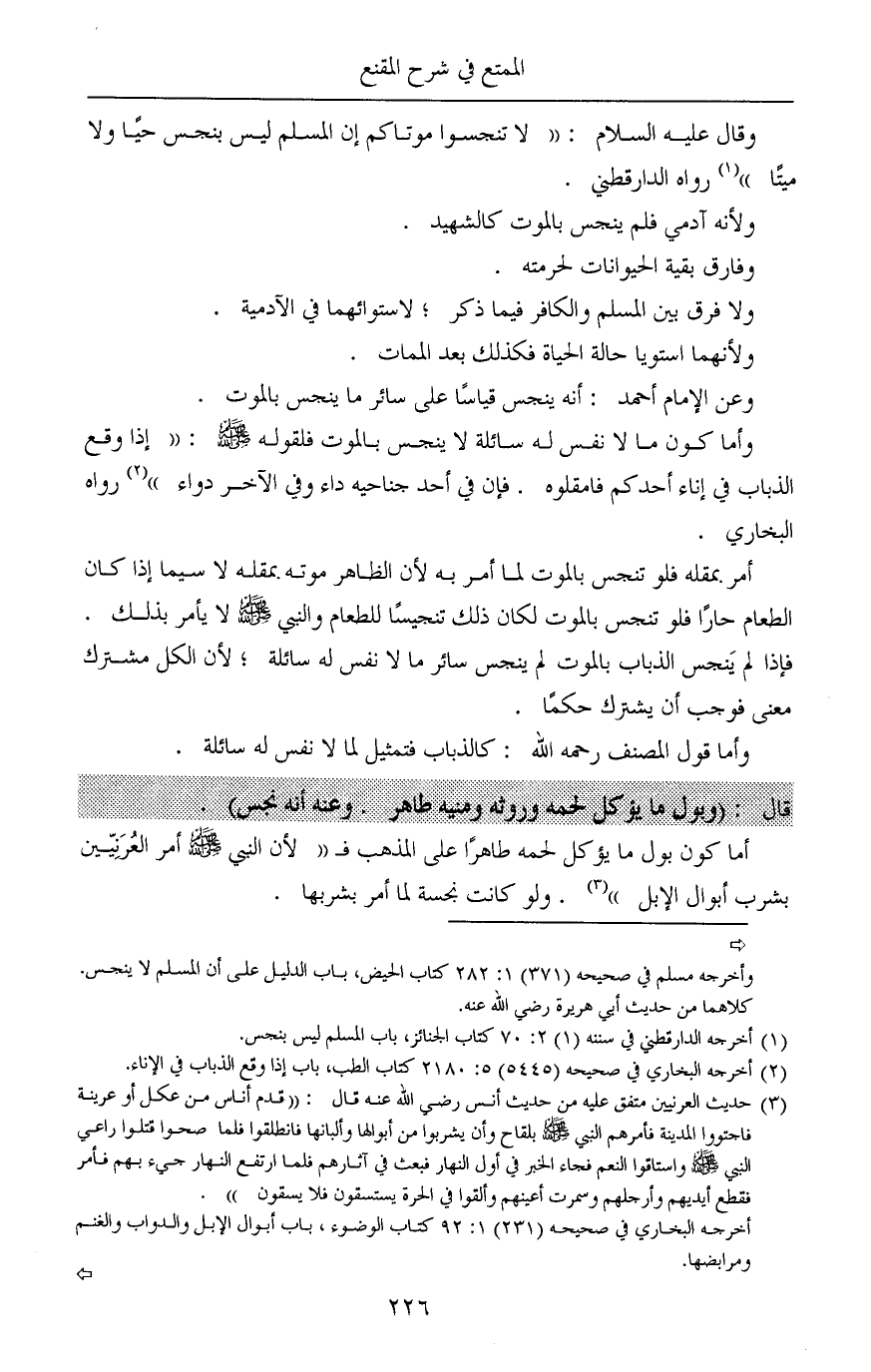 (¬1) أخرجه الدارقطني في سننه (1) 2: 70 كتاب الجنائز، باب المسلم ليس بنجس.