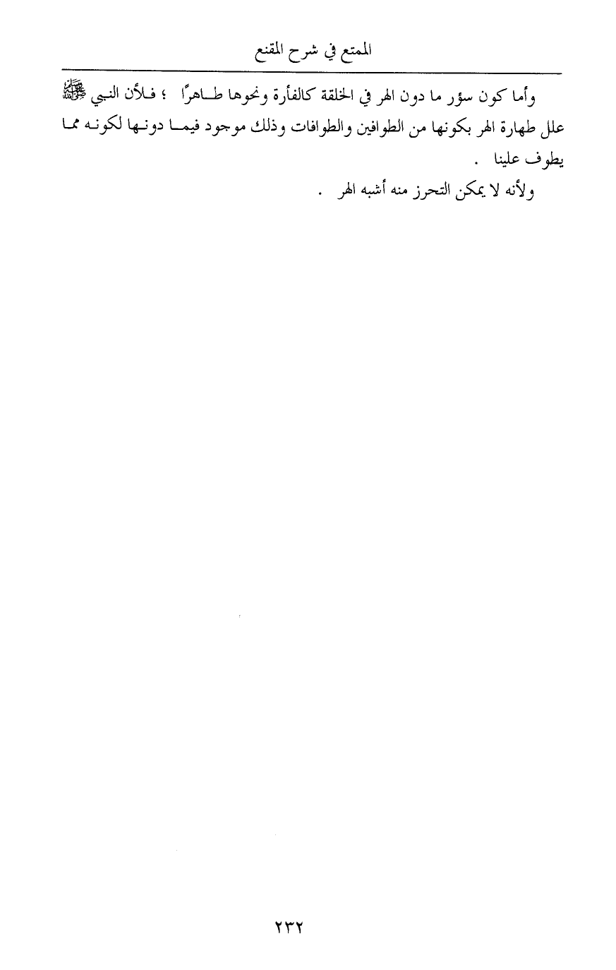 وأما كون سؤر ما دون الهر في الخلقة كالفأرة ونحوها طاهرًا؛ فلأن النبي - صلى الله عليه وسلم - علل طهارة الهر بكونها من الطوافين والطوافات وذلك موجود فيما دونها لكونه مما يطوف علينا.