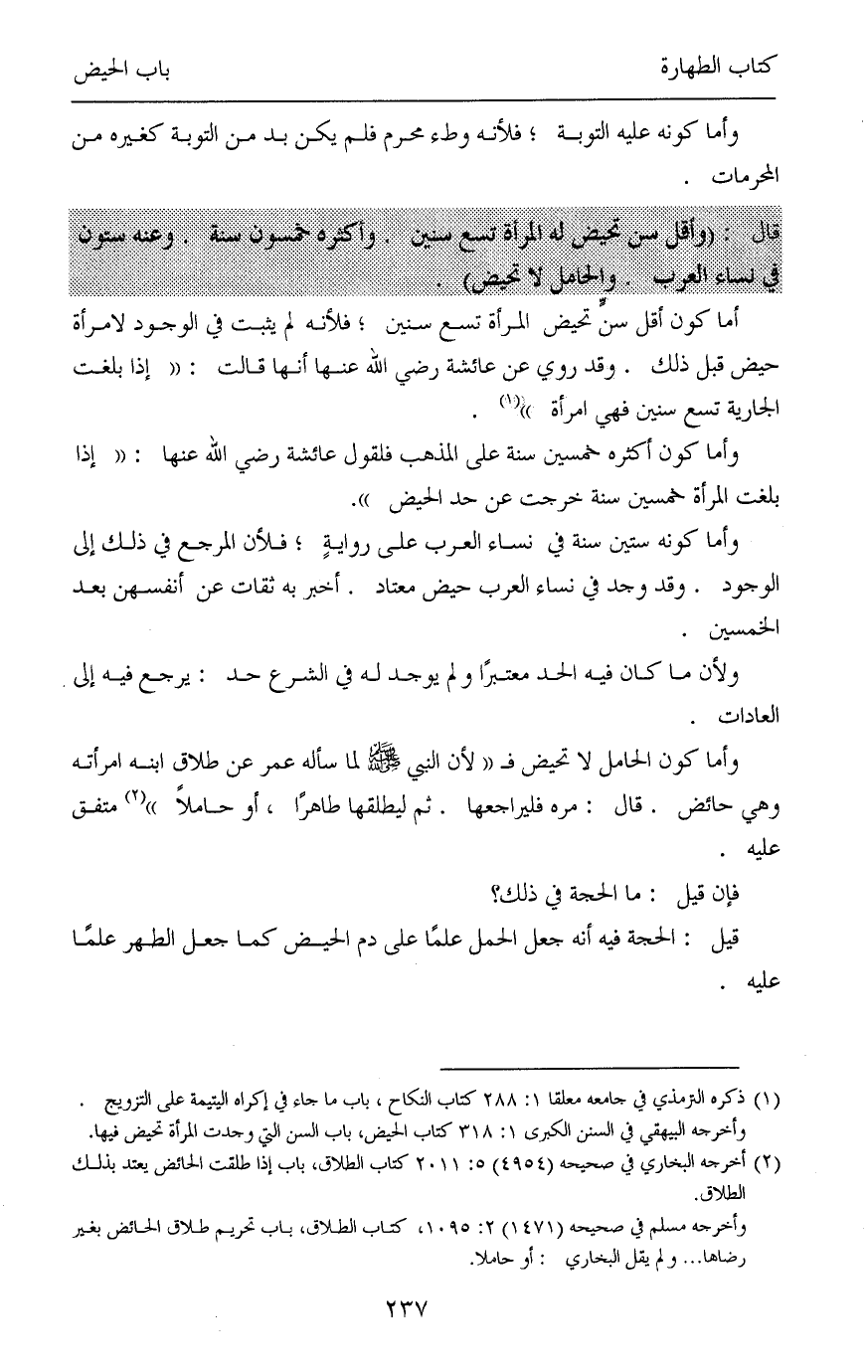 قال: (وأقل سن تحيض له المرأة تسع سنين. وأكثره خمسون سنة. وعنه ستون في نساء العرب. والحامل لا تحيض).