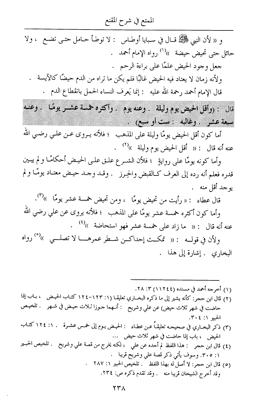 (¬2) قال ابن حجر: كأنه يشير إلى ما ذكره البخاري تعليقا (1: 123 - 124 كتاب الحيض، باب إذا حاضت في شهر ثلاث حيض) عن علي وشريح: أنهما جوزا ثلاث حيض في شهر. تلخيص الحبير 1: 304.