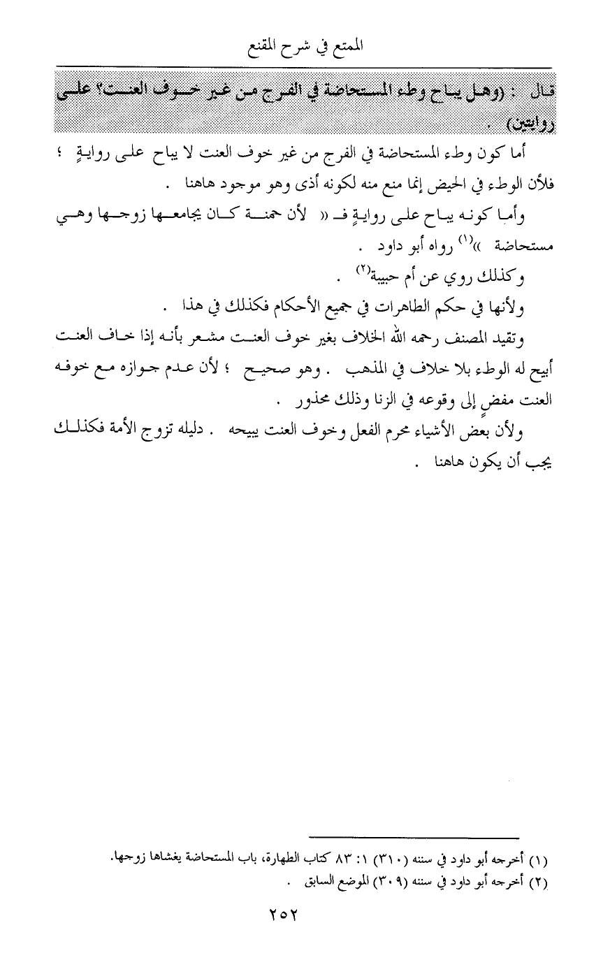 (¬1) أخرجه أبو داود في سننه (310) 1: 83 كتاب الطهارة، باب المستحاضة يغشاها زوجها.
