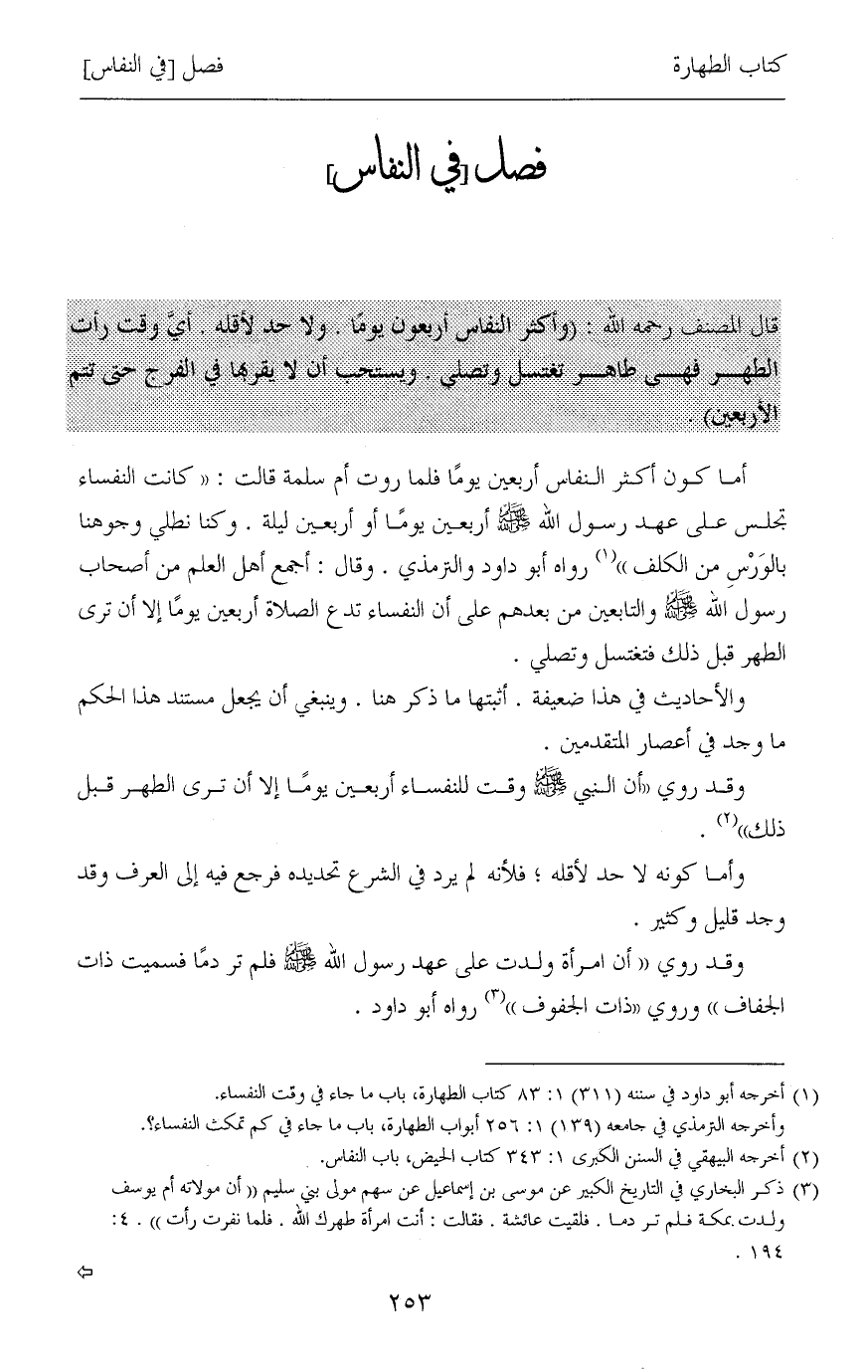 (¬2) أخرجه البيهقي في السنن الكبرى 1: 343 كتاب الحيض، باب النفاس.