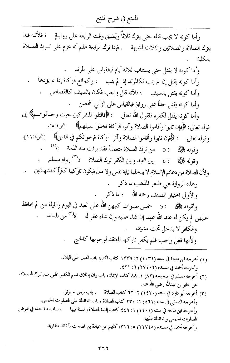 (¬2) أخرجه مسلم في صحيحه (82) 1: 88 كتاب الإيمان، باب بيان إطلاق اسم الكفر على من ترك الصلاة، عن جابر بن عبدالله رضي الله عنه.