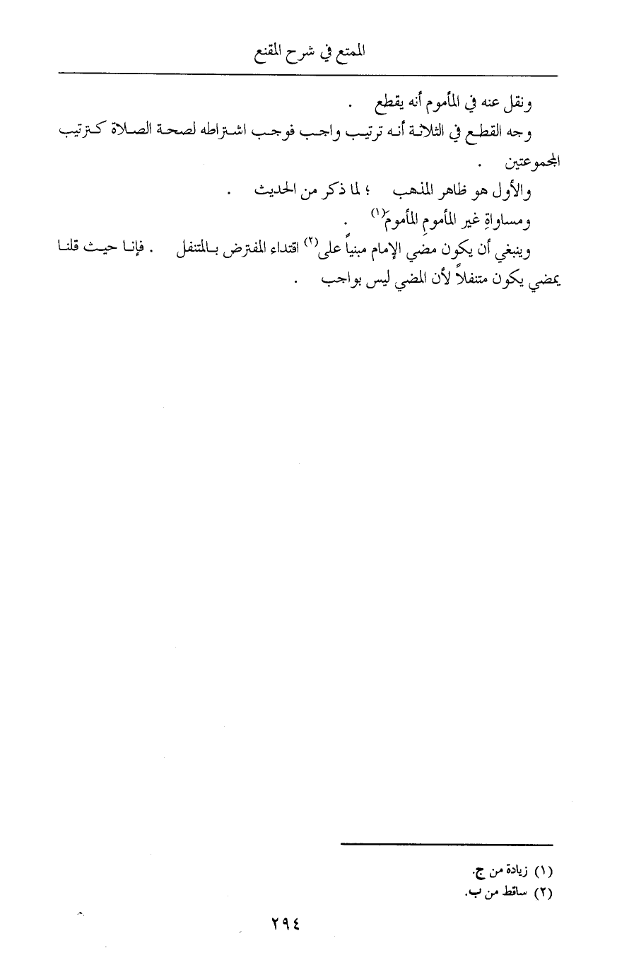 وجه القطع في الثلاثة أنه ترتيب واجب فوجب اشتراطه لصحة الصلاة كترتيب المجموعتين.
