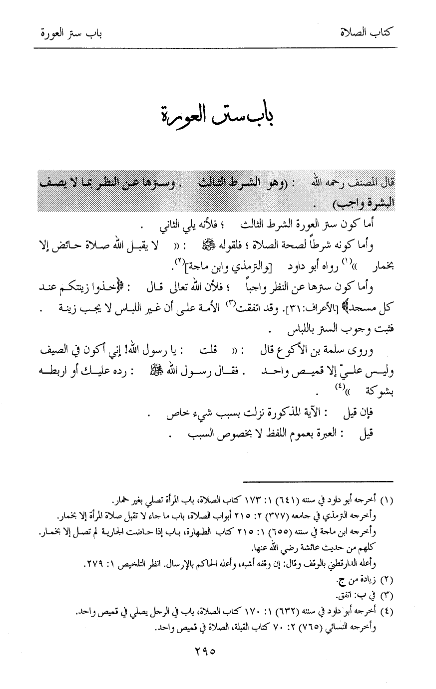 (¬4) أخرجه أبو داود في سننه (632) 1: 170 كتاب الصلاة، باب في الرجل يصلي في قميص واحد.
