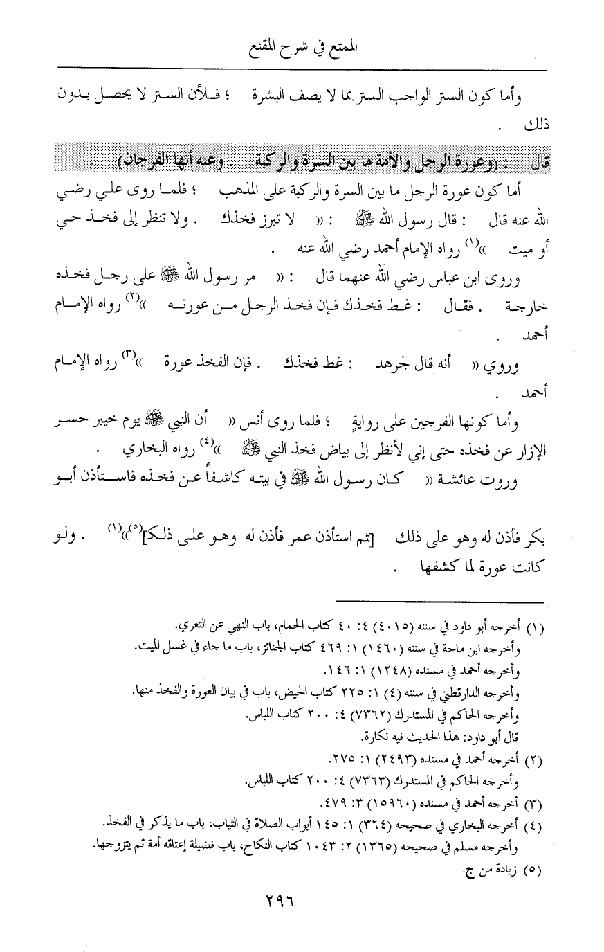 (¬4) أخرجه البخاري في صحيحه (364) 1: 145 أبواب الصلاة في الثياب، باب ما يذكر في الفخذ.