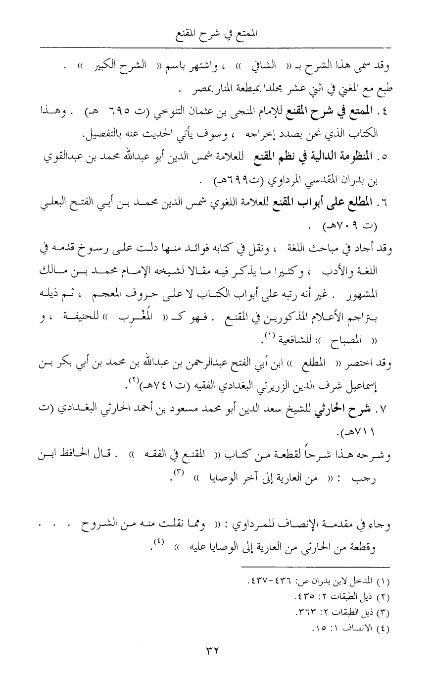 4. الممتع في شرح المقنع للإمام المنجى بن عثمان التنوخي (ت 695 هـ). وهذا الكتاب الذي نحن بصدد إخراجه، وسوف يأتي الحديث عنه بالتفصيل.