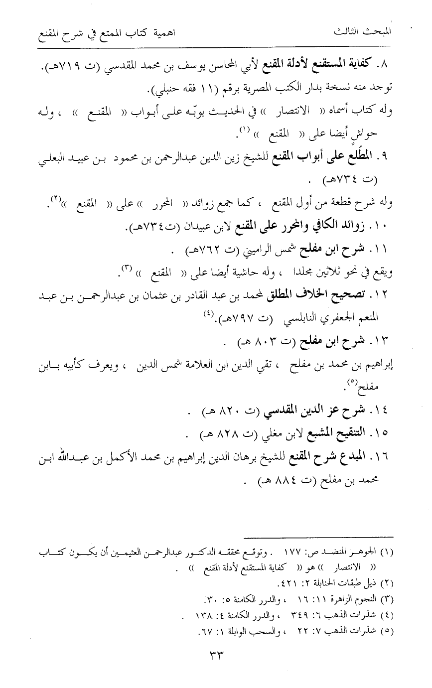(¬1) الجوهر المنضد ص: 177. وتوقع محققه الدكتور عبدالرحمن العثيمين أن يكون كتاب «الانتصار» هو «كفاية المستقنع لأدلة المقنع».
