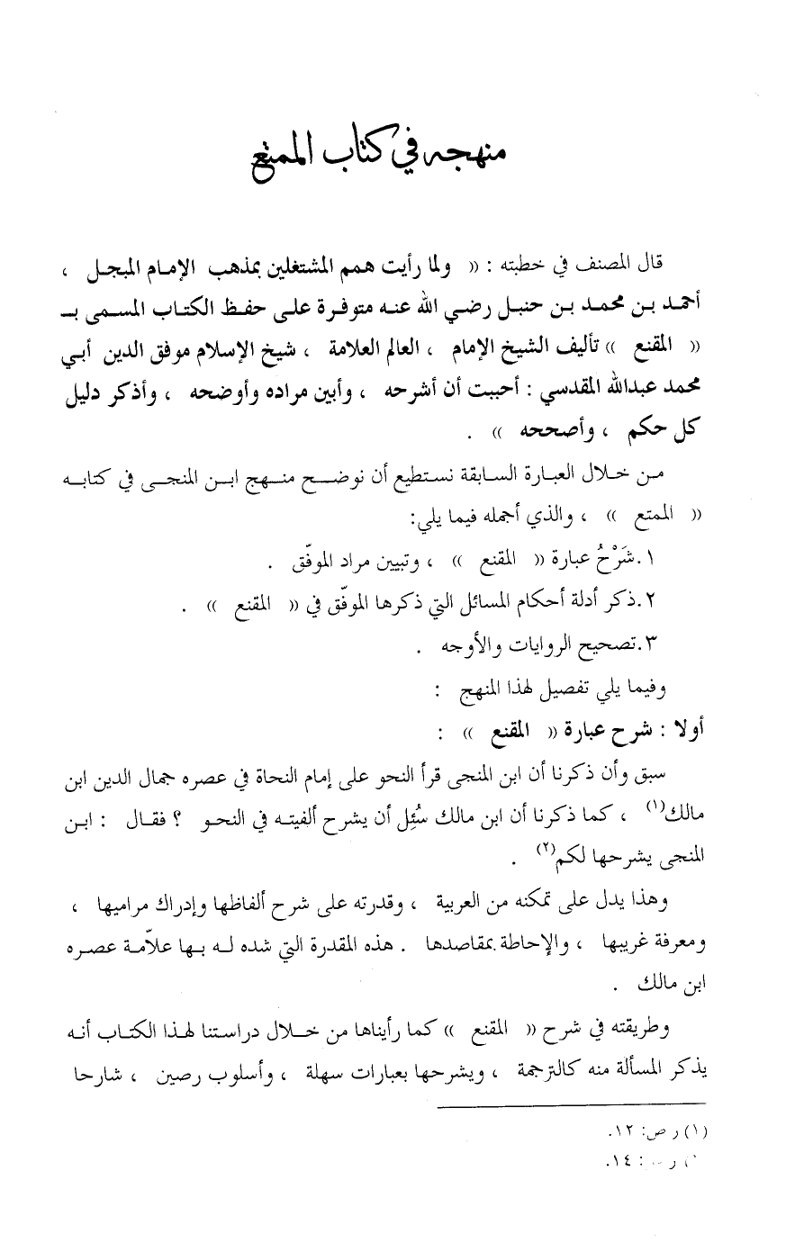 من خلال العبارة السابقة نستطيع أن نوضح منهج ابن المنجى في كتابه «الممتع»، والذي أجمله فيما يلي: