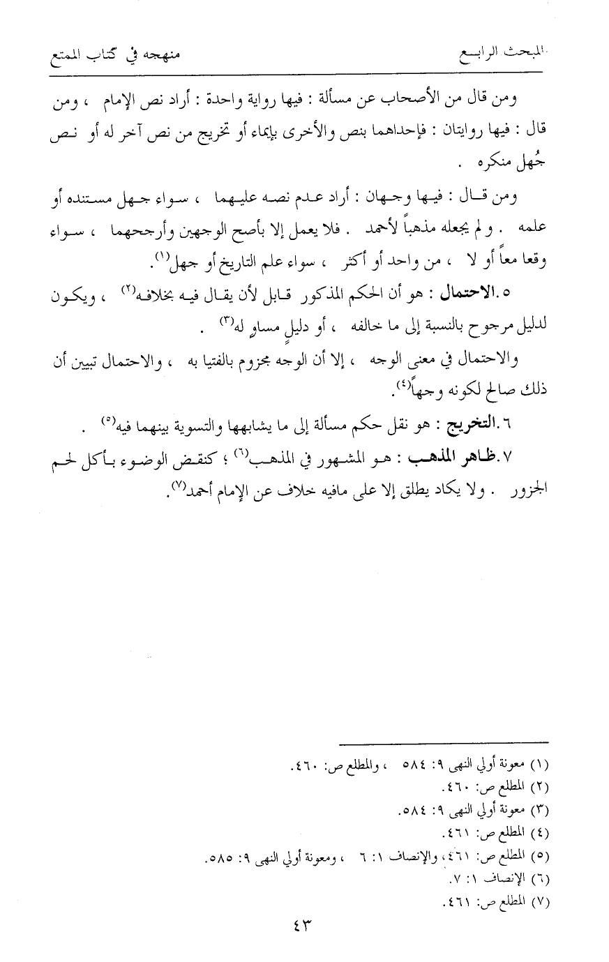 (¬5) المطلع ص: 461، والإنصاف 1: 6، ومعونة أولي النهى 9: 585.