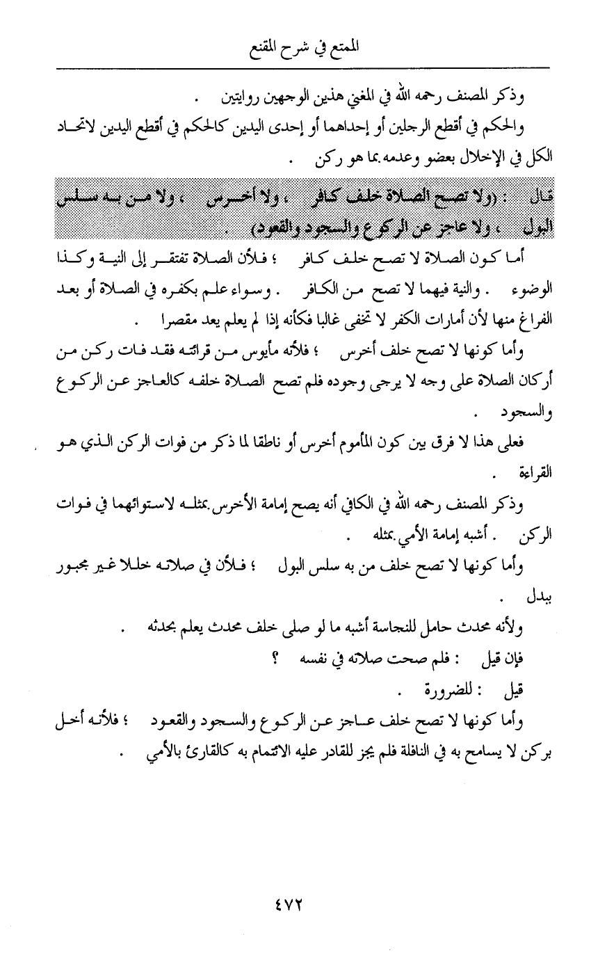 قال: (ولا تصح الصلاة خلف كافر، ولا أخرس، ولا من به سلس البول، ولا عاجز عن الركوع والسجود والقعود).
