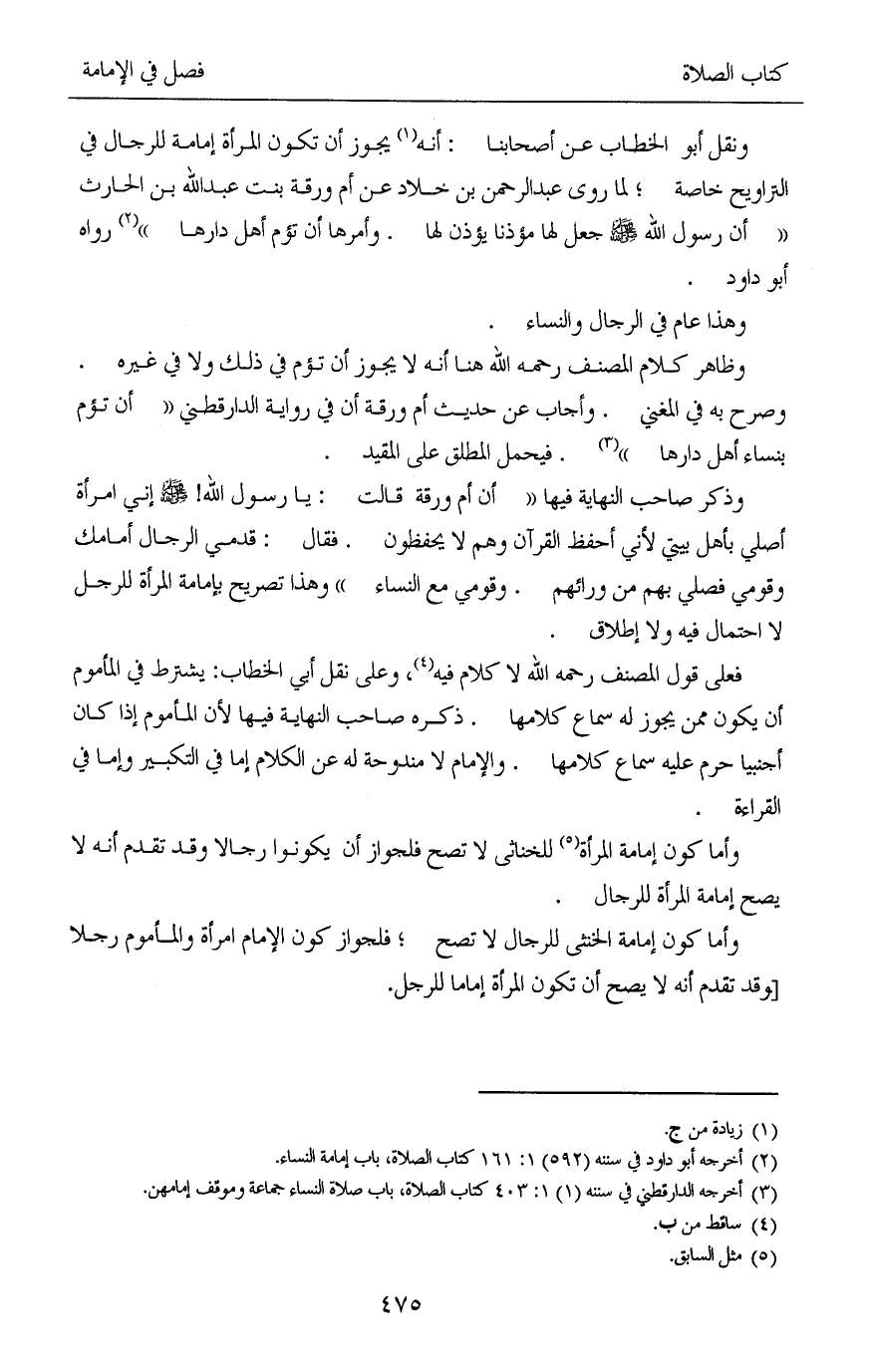 (¬2) أخرجه أبو داود في سننه (592) 1: 161 كتاب الصلاة، باب إمامة النساء.
