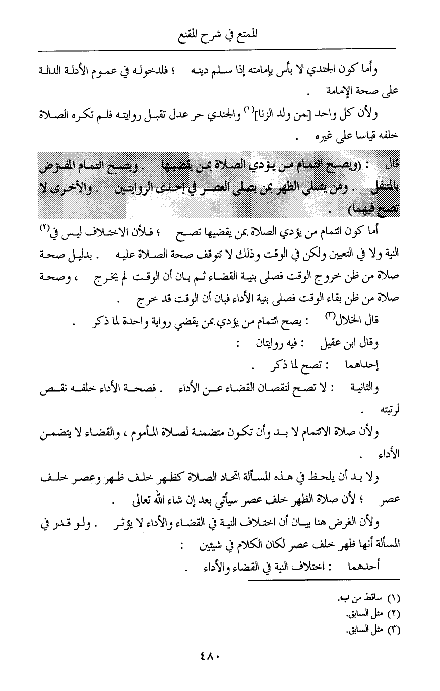 ولا بد أن يلحظ في هذه المسألة اتحاد الصلاة كظهر خلف ظهر وعصر خلف عصر؛ لأن صلاة الظهر خلف عصر سيأتي بعد إن شاء الله تعالى.